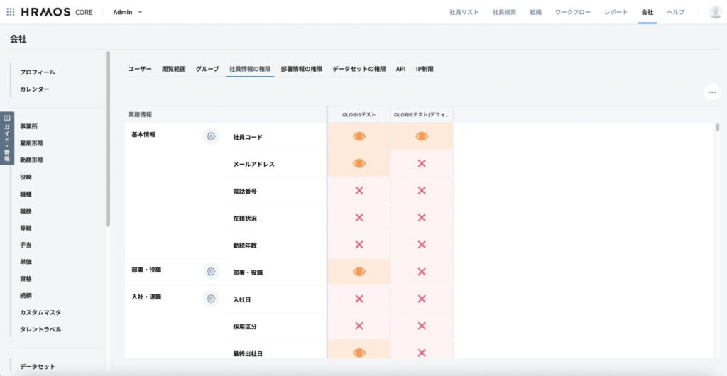 HRMOS COREの管理画面にて、以下項目の閲覧権限をオンにしてください。