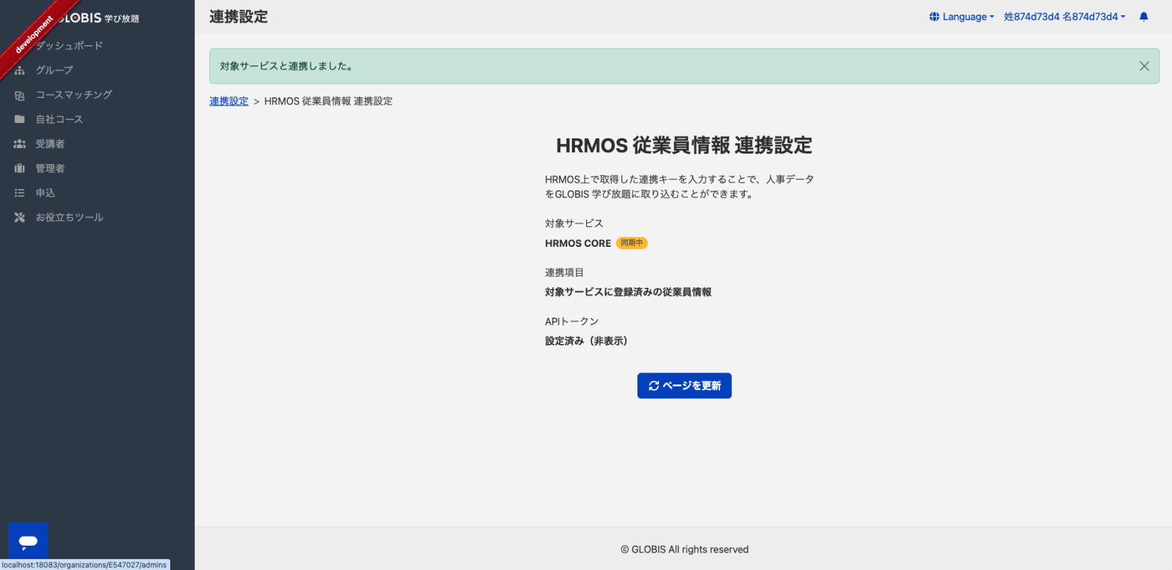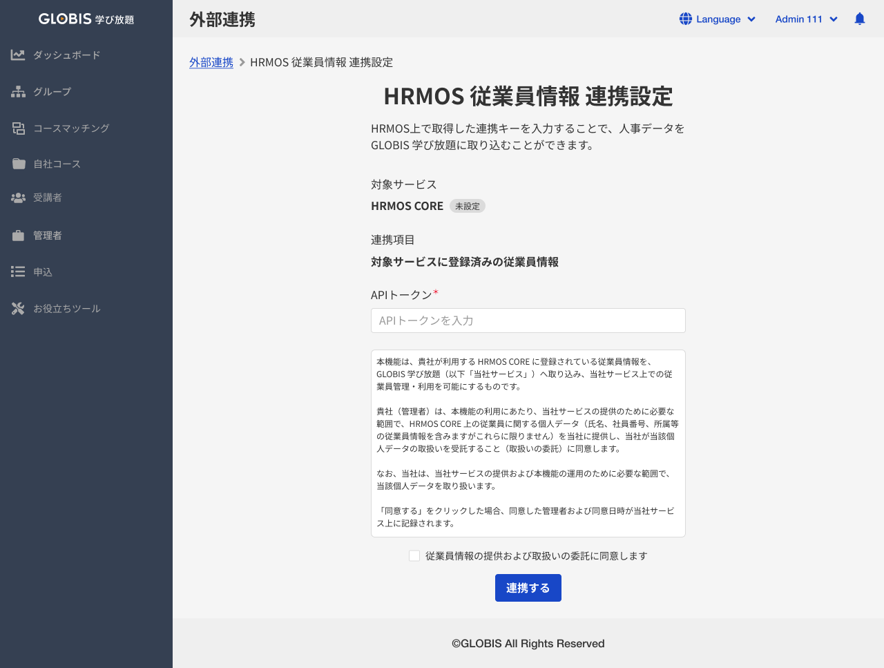 コース情報と受講者情報の連携機能のご利用には、グロービス学び放題と社内版ビズリーチ、HRMOSラーニングそれぞれの契約が必要です。