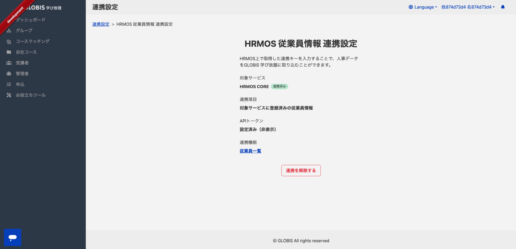 連携を解除する場合は、HRMOS COREの連携設定画面にて、「連携を解除する」ボタンをクリックしてください。連携した従業員情報は、連携解除によって全て削除されます。