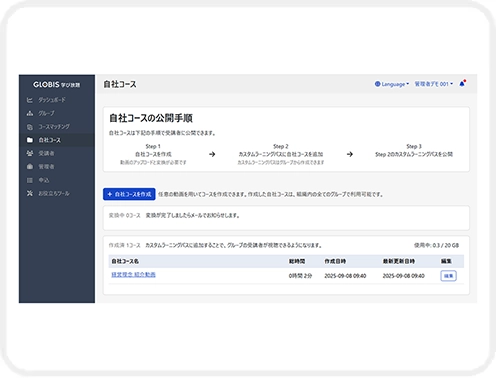 社長の講話や、受講者へのフォローメッセージなども発信可能です。