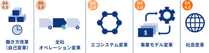 DXの推進は大きく5段階に分かれており、DX0.0は働き方改革、DX1.0は全社オペレーション変革、DX2.0はエコシステム変革、DX3.0は事業モデル変革、DX4.0は社会変革と定めています。このうち、0.0から2.0までは比較的計画しやすく、成果も見えやすいことから、既に具体的な取り組みが進んでいます。3.0や4.0は社会に大きなインパクトを与える取り組みを目指しており、半導体製造に使われるABF(層間絶縁材)や、アミノインデックス(血液中のアミノ酸バランスから、様々な疾病リスクを評価するサービス)などのスペシャリティ商品の開発や商品サービスを通じてイノベーションを実現すべく取り組んでいます。