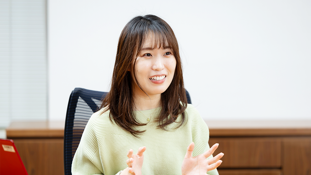 設樂さん:私は採用・キャリアグループに所属し、人財育成・研修を担当しています。職位・階層別研修のほか、自己啓発研修や各種資格の取得支援などの企画・運営を行っています。