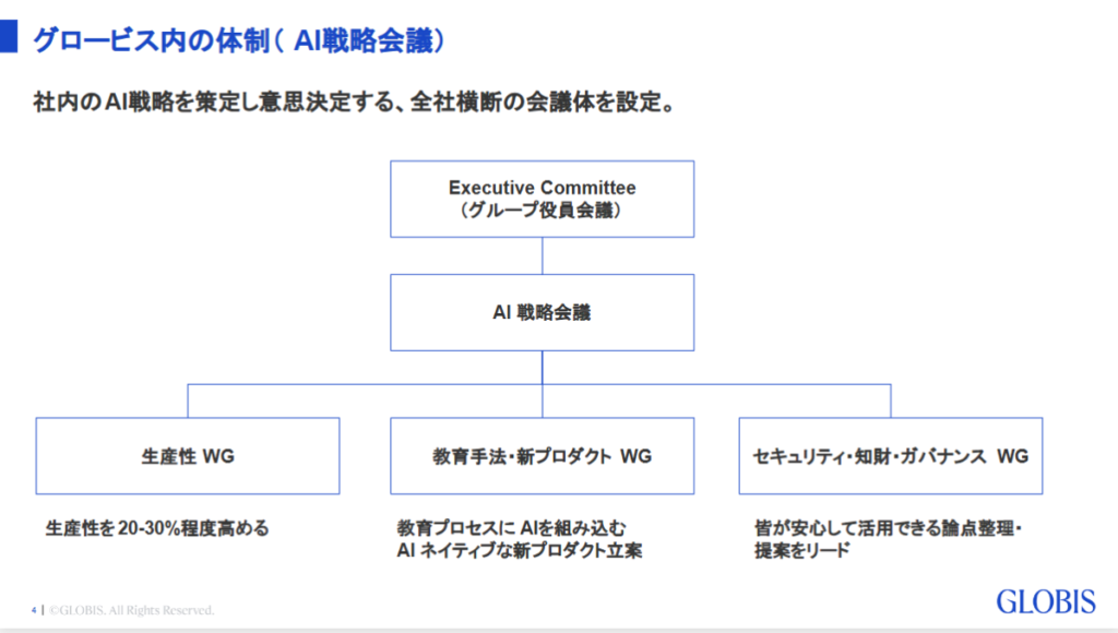 法人向けの人材育成や経営大学院を運営する当社・株式会社グロービスでは、AI活用を全社的な文化として根付かせるためにAI活用を推進しています。