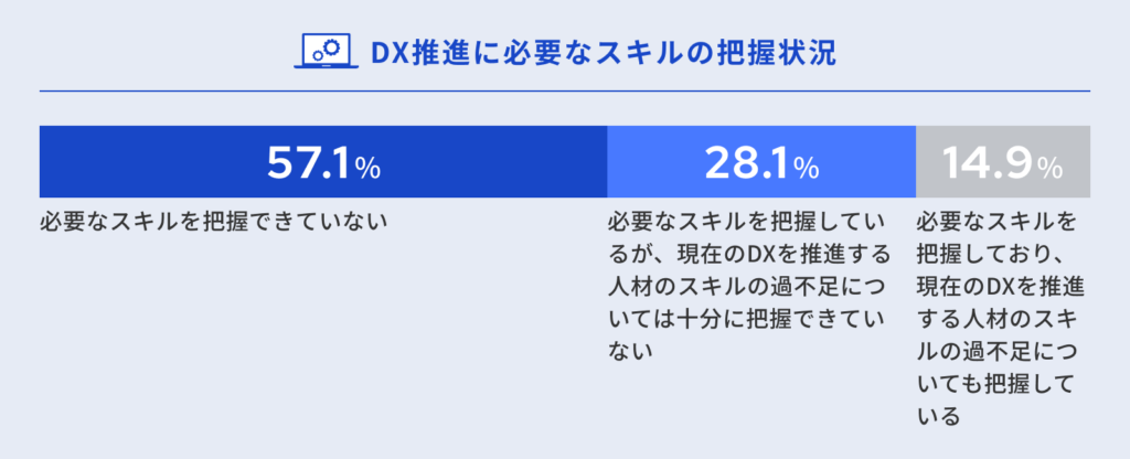 実際、「DX動向2025」によれば、日本企業の57.1%が「DX推進に必要な人材のスキルを把握できていない」と回答しており、多くの企業に共通する課題であることが明らかになっています。