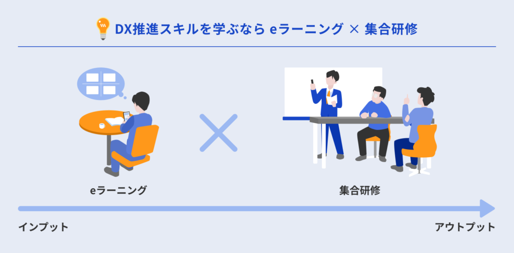 DX推進スキルの定着を図るには、インプットだけでなく、アウトプットの機会を設けることが大切です。