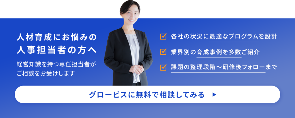 DX推進スキル標準の活用方法や社員の育成設計にお悩みの方は、お気軽にグロービスまでご相談ください。