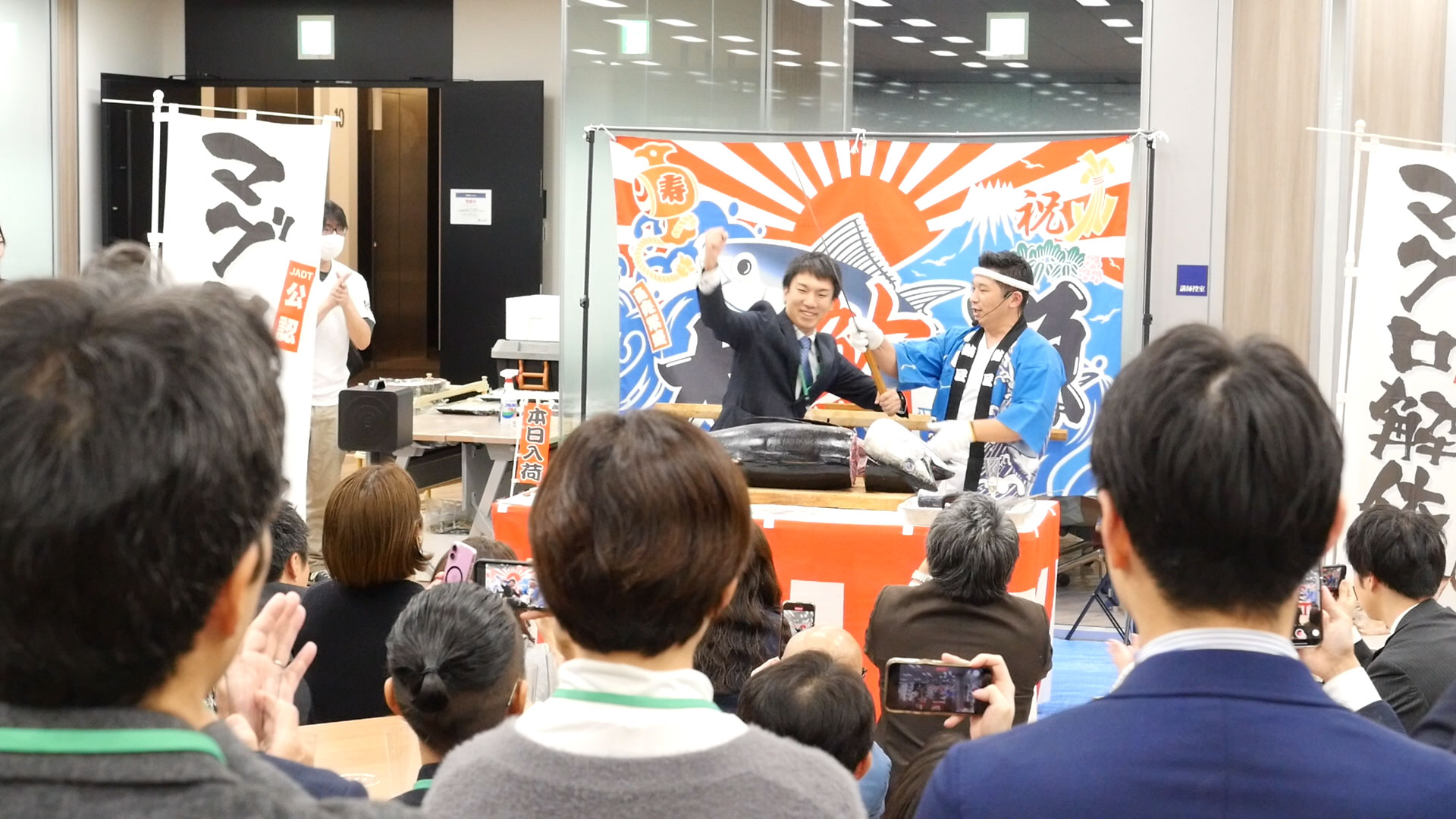 そしてグロービスでも前代未聞・初開催となる「マグロ解体ショー」。専門のマグロ職人さんと共に、大きなマグロが皆様の前にご登場。