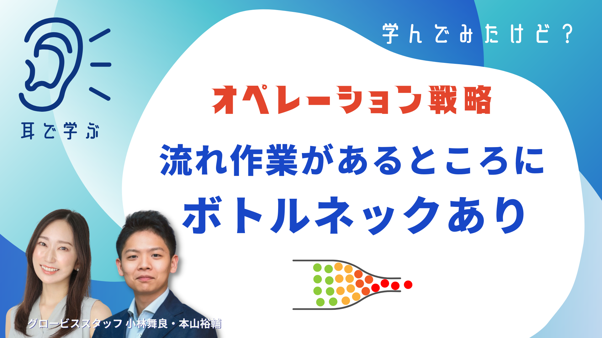 本コースでは、企業の競争優位性を築くために重要な「オペレーション戦略」を、日常の課題・経験に即して考えていきます。日々同じ作業の繰り返しになっている業務のボトルネックを見つけ、オペレーションを改善していきましょう!