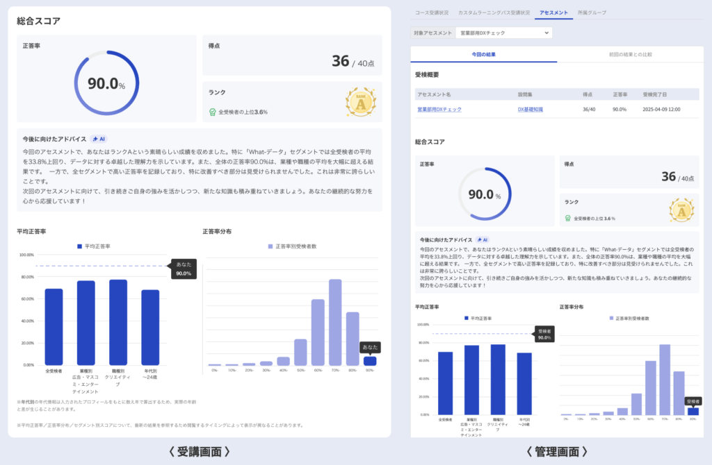 まさにアセスメントは、その第一歩を支えるものです。現状スキルを数値化・可視化することで、何を優先的に学ぶべきかが明確になり、個別ニーズに合った学習内容を提供できるようになります。