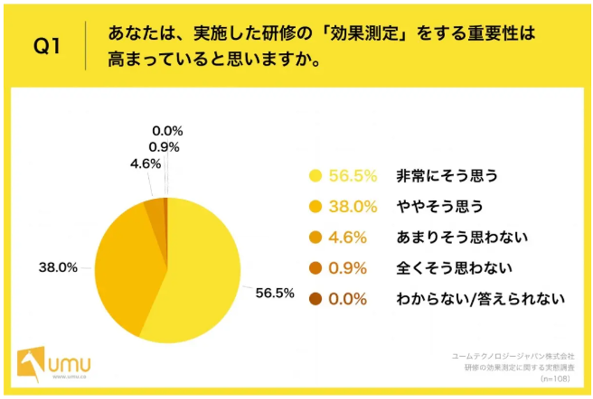 しかし、現場に目を向けると、研修や学習への投資が必ずしも成果につながっていないという声が多く聞かれます。大企業の人事担当108名を対象とした調査では、「実施した研修の効果測定をする重要性は非常に高まっていると感じる」と答えた人が56.5%に達しました。