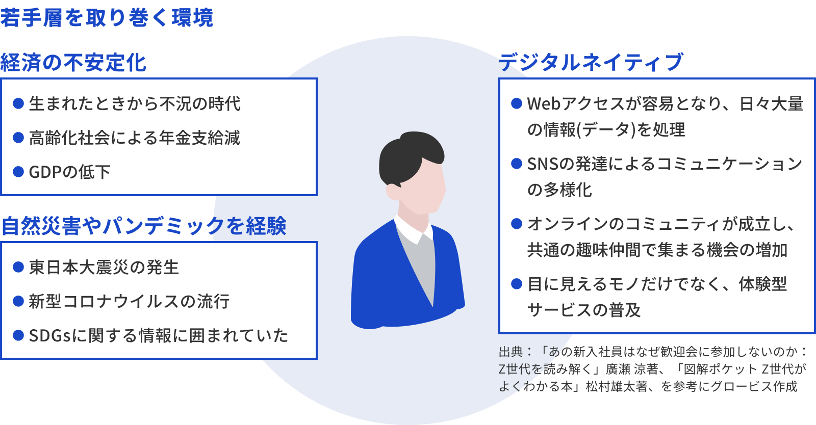 昨今の新入社員は東日本大震災や新型コロナウイルスの流行を経験しているため、環境には変化があることを前提としている傾向にあります。そのため一本道ではない多角的なキャリアを追求したり、自己成長の意識が高いことが特徴です。そのようなニーズに応えるため、新入社員が自由に学習できるツールとしてeラーニングを活用するケースもあります。