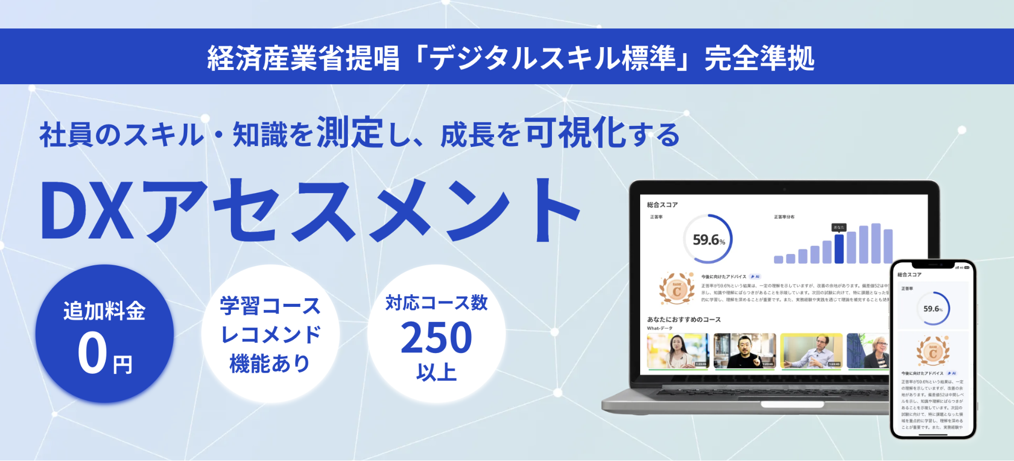 | 導入背景 | ⚫︎評価の役割を担っていた既存の研修の形を、アセスメントテストとeラーニングの組み合わせで実現 ⚫︎知識やスキルの明確なスコア化ができることが、プログラムの目的に合致 |